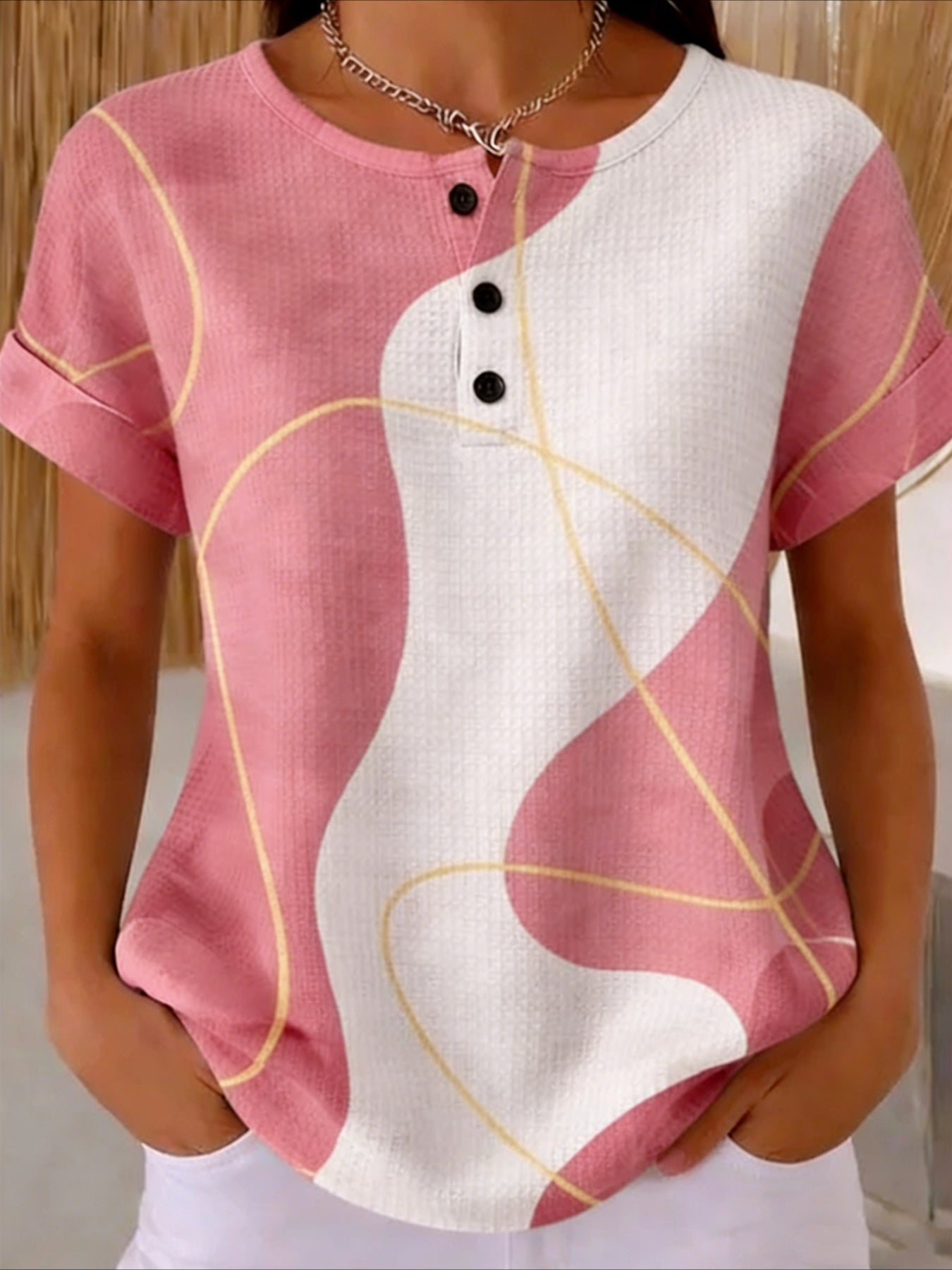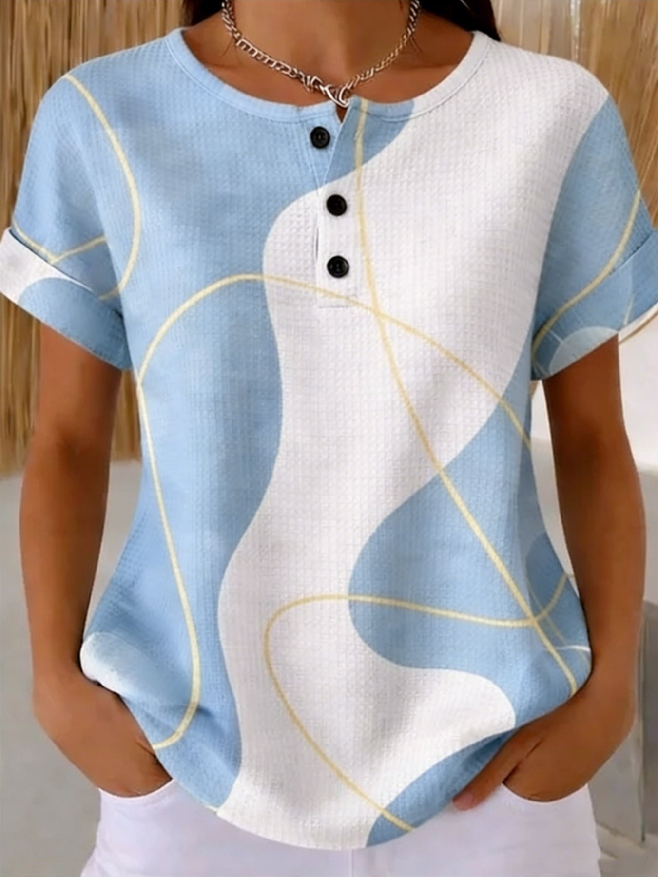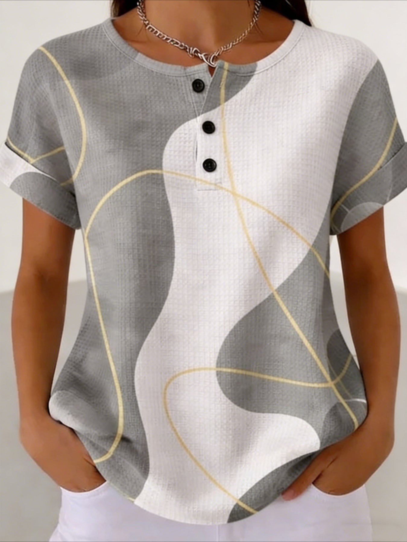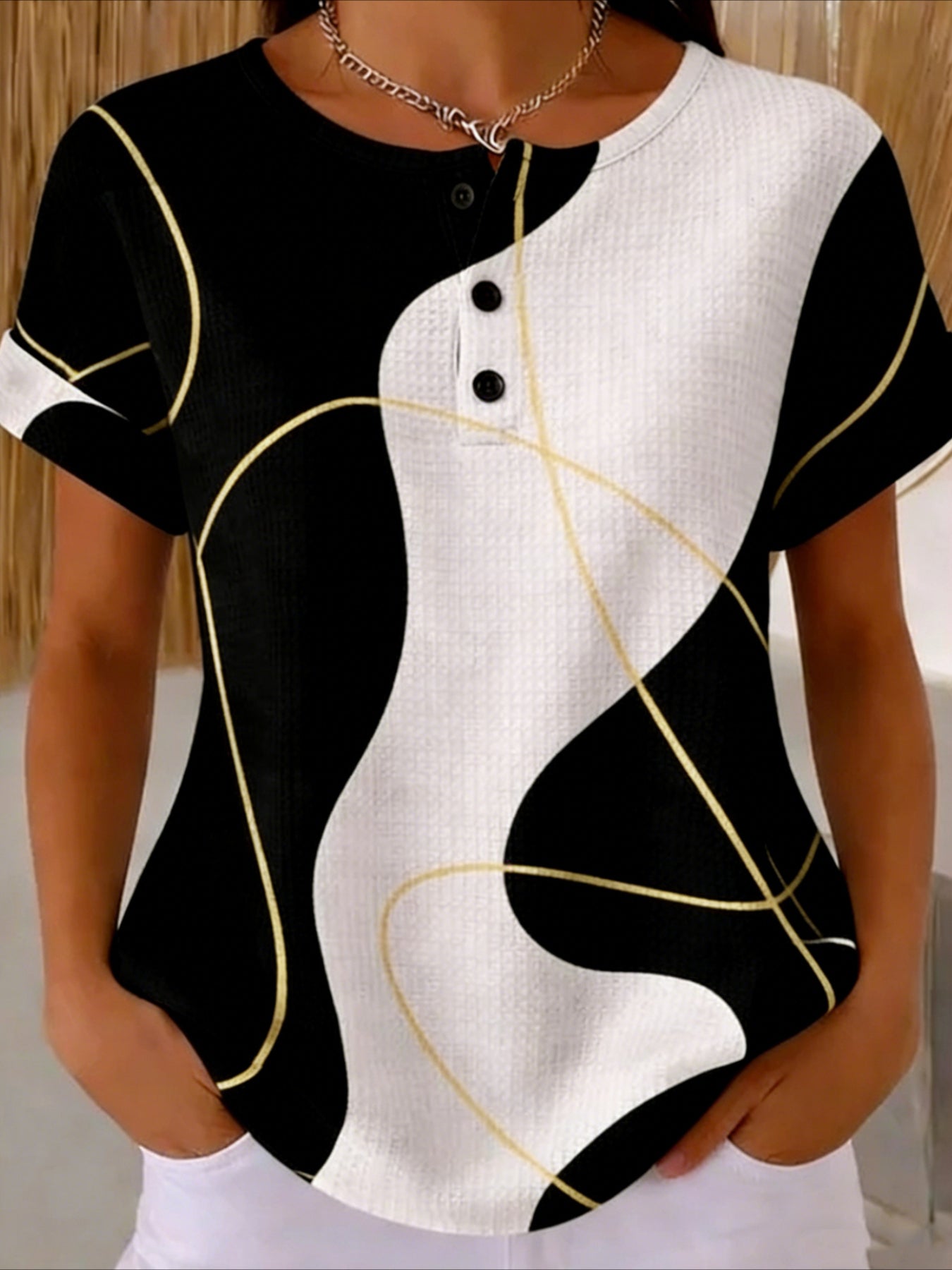 Regular Short Sleeve Round Neck Fit Casual Abstract T-Shirt