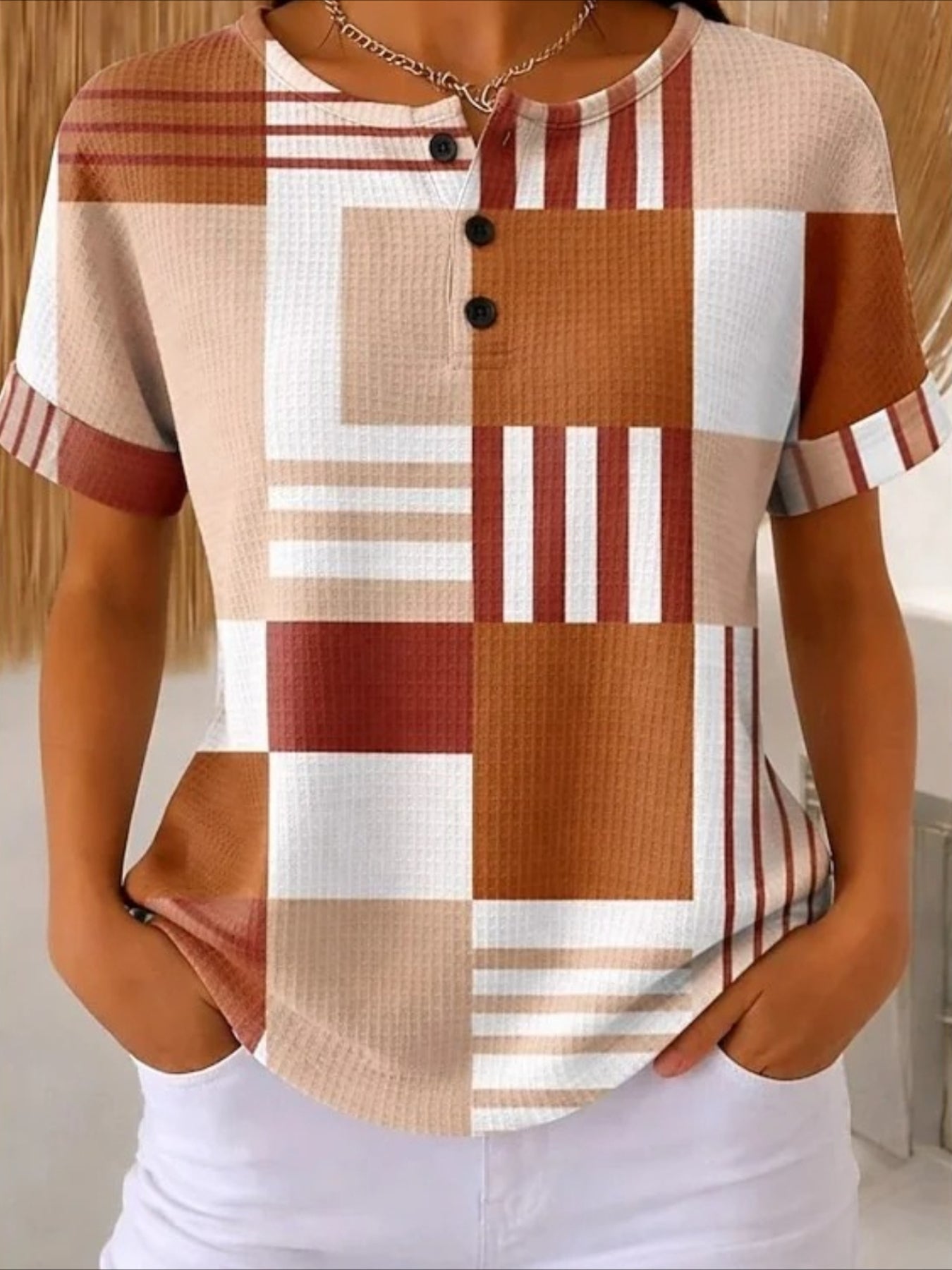 Short Sleeve Loose Geometric Others Vintage T-Shirt