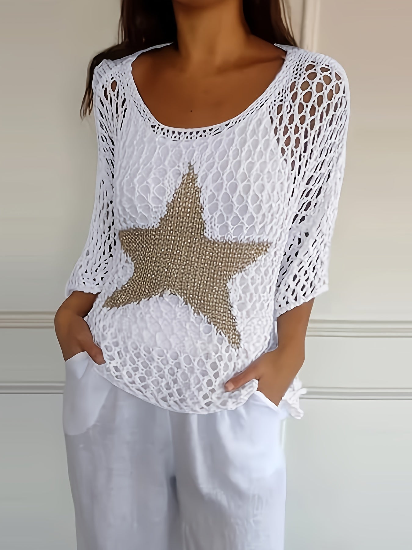 Loose Hollow Knit Star Cardigan Round Neck Sun Protection Shirt