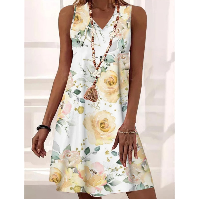 Sale Elegant Casual A-Line Floral Print Sleeveless Dress