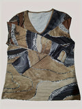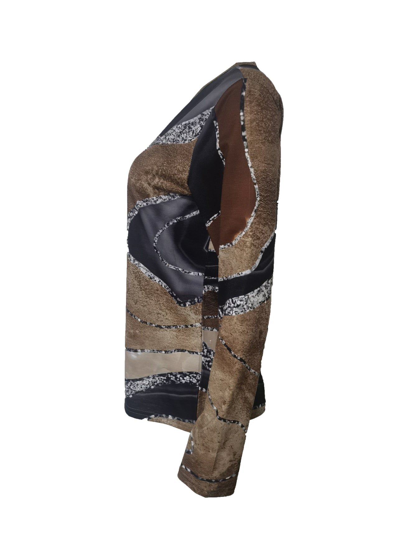 Sale V Neck Long Sleeve Geometric Regular Micro-Elasticity Regular Fit Blouse