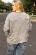 Medium Grey Floral Star Patched Pattern 3/4 Sleeve Plus Size Top