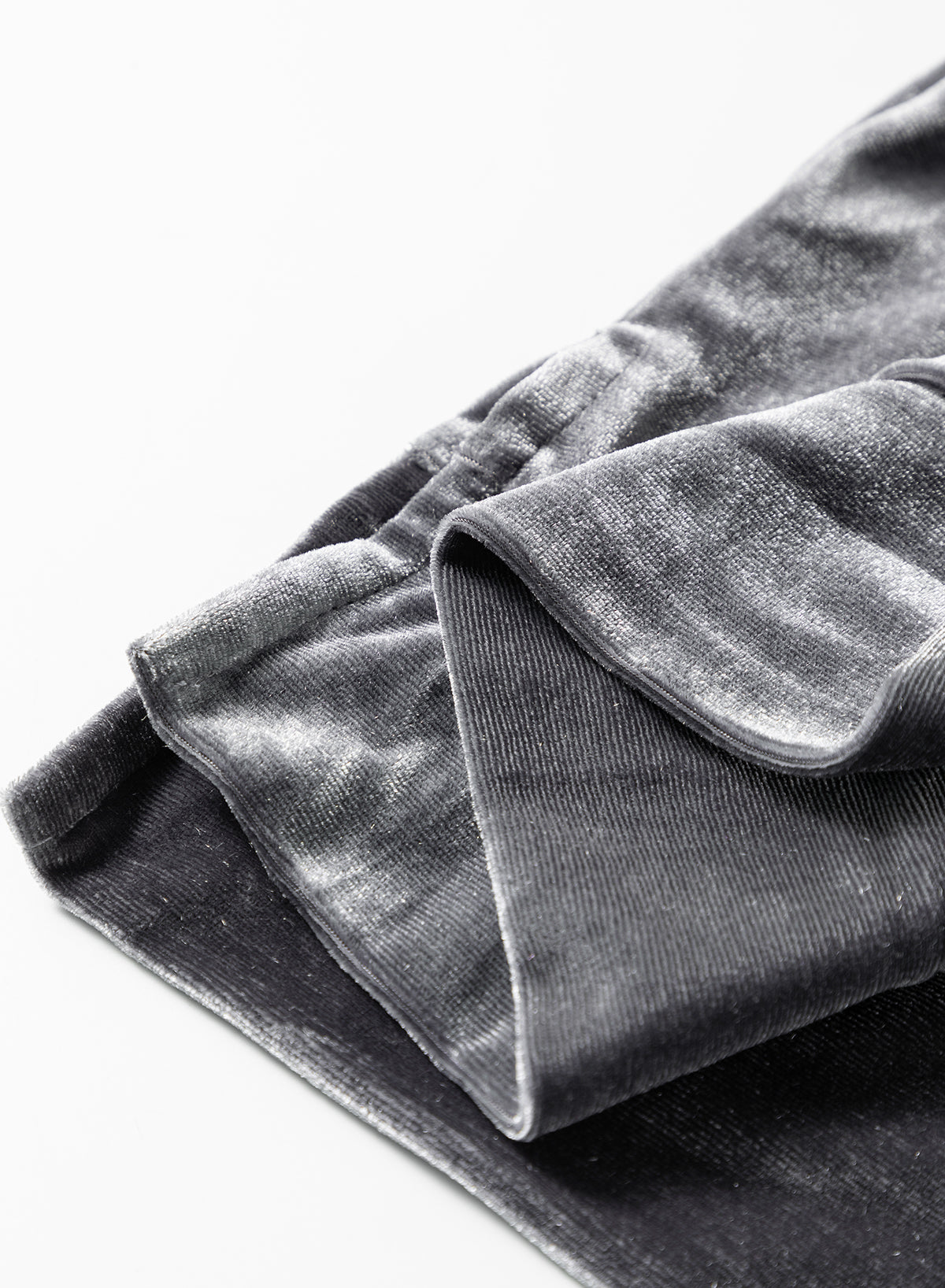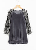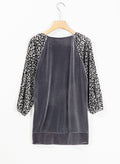 Sale Medium Grey Leopard Splicing Lantern Sleeve Velvet Blouse