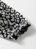 Medium Grey Leopard Splicing Lantern Sleeve Velvet Blouse