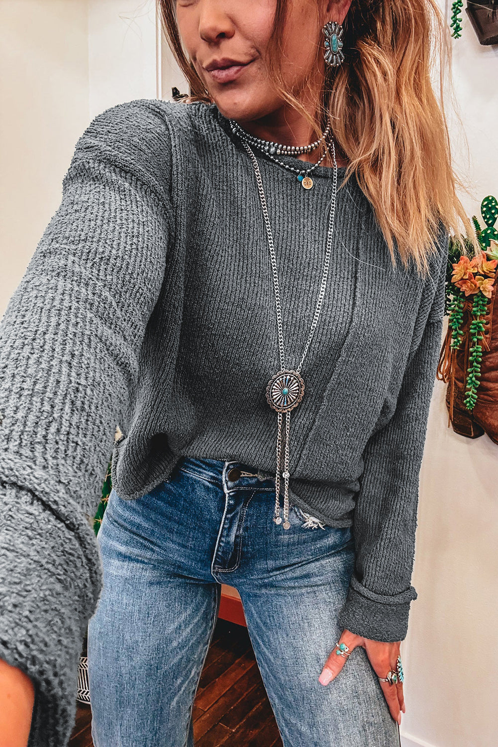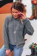 Medium Grey Raw Edge Uneven Hem Patchwork Drop Shoulder Sweater