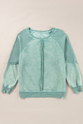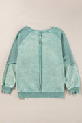 Sale Mineral Blue Solid Waffle Knit Patchwork Raglan Sleeve Sweatshirt