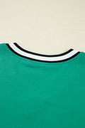 Sale Mint Green Varsity Contrast Striped V Neck Long Sleeve T Shirt Dress with Pockets