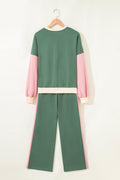 Mist Green 2pcs Color Block Pullover Loose Pant Set