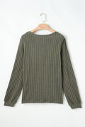 Sale Striped Botton Crew Neck T-Shirt, Elegant Long Sleeve T-Shirt