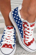 Sale Multicolor American Flag Stars Printed Frayed Detail Lace-up Shoes