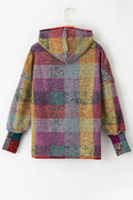 Multicolor Brushed Plaid Buttoned Pullover Oversized Hoodie