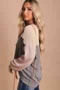 Multicolor Color Block Long Sleeve Ribbed Loose Top