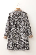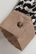Sale Multicolour Button Striped Collar Leopard Print Long Sleeve Flared Dress