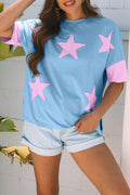 Myosotis Frayed Denim Star Patched Oversize T Shirt