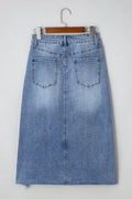 Myosotis Irregular Distressed Bottom Denim Midi Skirt