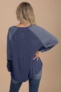 Navy Blue Contrast Print Striped Raglan Long Sleeve Loose Top