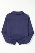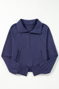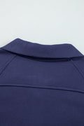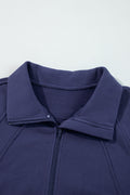 Sale Navy Blue Fleece Lined Zip Up Stand Collar Thumbhole Sleeve Sweatshirt