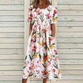 Sale Elegant Floral Print Knee-Length Short Sleeve Round Neck A-Line Dress