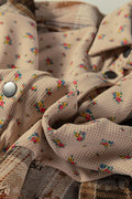 Oatmeal Boho Floral Plaid Patchwork Distressed Detail Ruffled Sleeve Waffle Knit Shacket