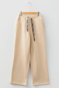 Oatmeal Fleece Lined Leopard Drawstring Elastic Waist Solid Pants