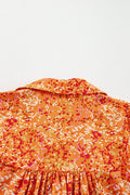 Sale Red Floral Print Pleated Detail Notched Neck Puff Sleeve Blouse