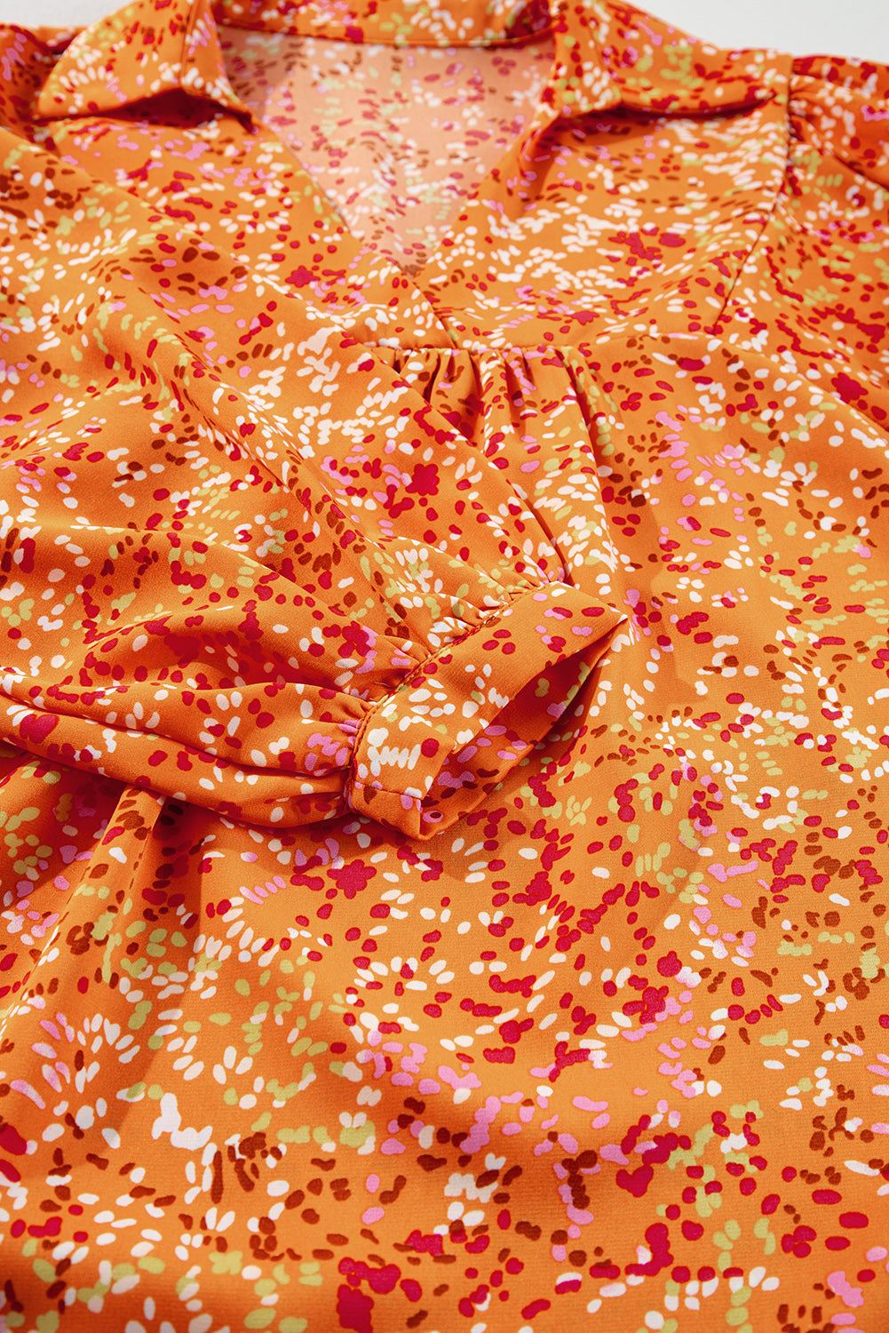 Sale Orange Abstract Print Collared V Neck Babydoll Blouse