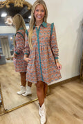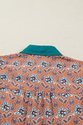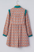 Orange Boho Floral Contrast Collared Shirt Mini Dress