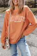 Sale Orange SPOOKY SEASON Embroidered Letter Graphic Twisted Ribbed Sweatshirt