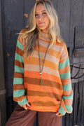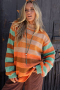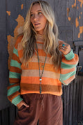 Sale Orange Stripe Color Block High Neck Drop Shoulder Cozy Sweater