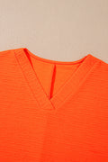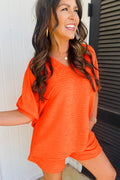 Sale Orange Textured V Neck T Shirt and Shorts Set