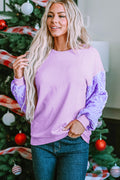 Orchid Petal Sequin Patchwork Long Sleeve Pullover Top