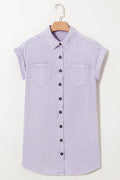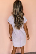 Orchid Petal Short Sleeve Double Chest Pocket Denim Shirt Dress