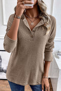 Sale Pale Khaki Rib Textured Henley Knit Top