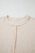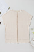 Pale Khaki Solid Color Textured Seamed Short Sleeve Top