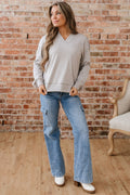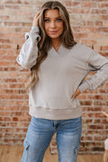 - This womens sweatshirt with v neck is great to show a slim feminine look.