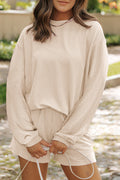 Sale Parchment Corded Knit Long Sleeve Top and High Waist Shorts Set