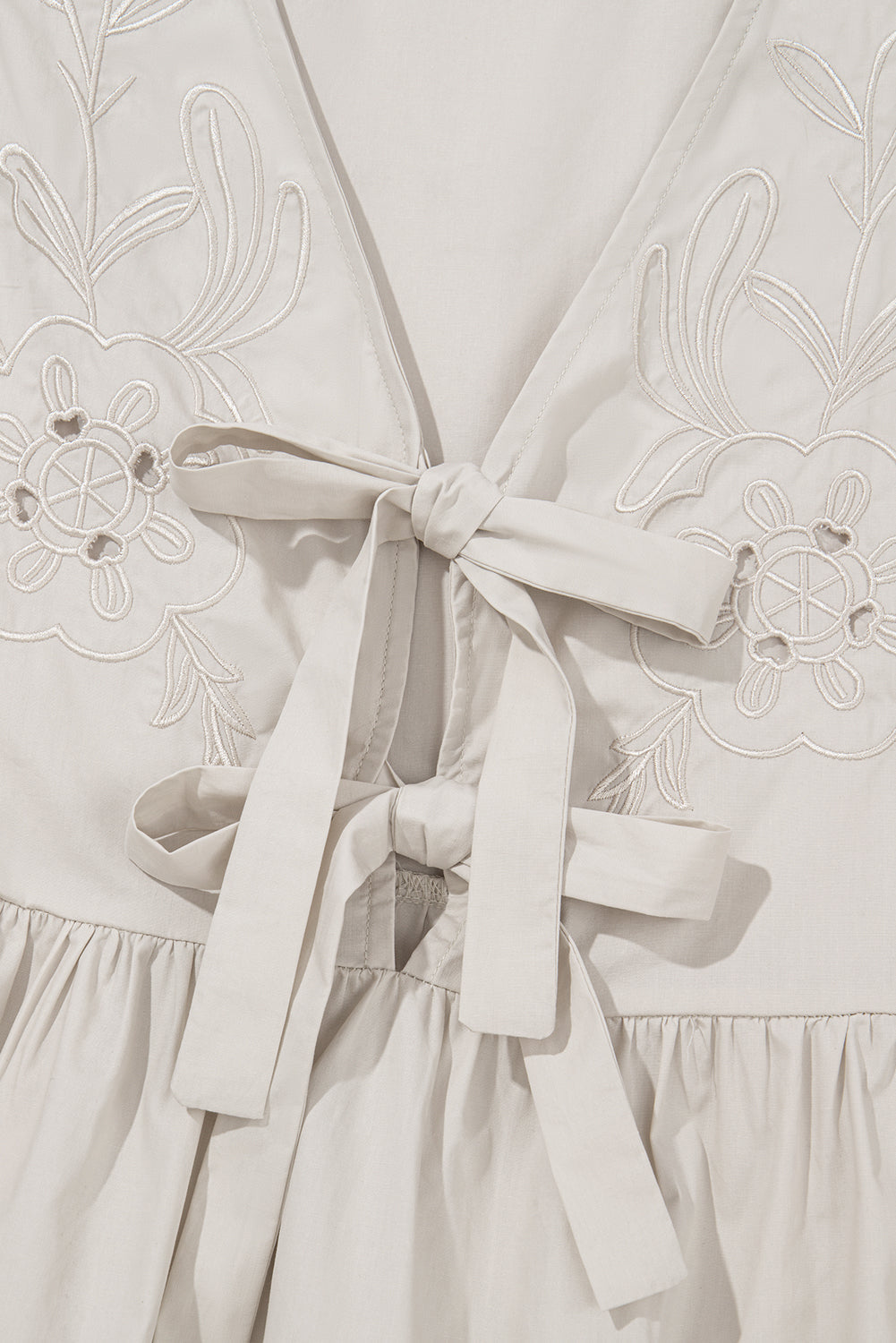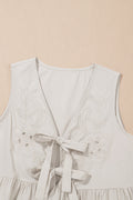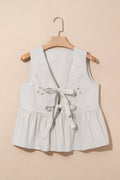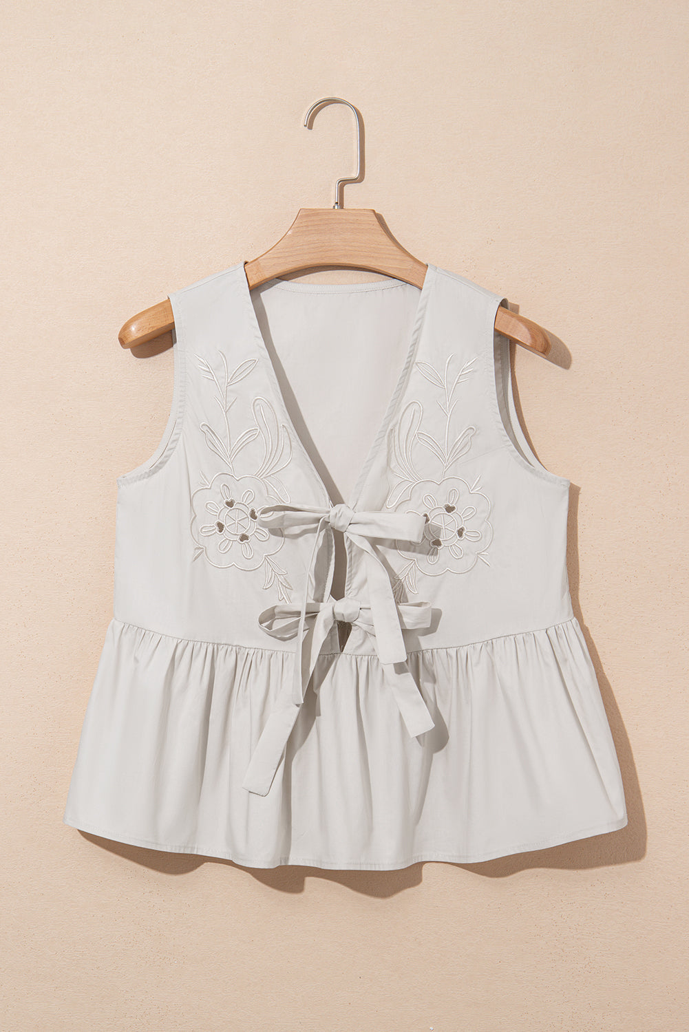 Parchment Hollow Out Embroidered Flower Knot Front V Neck Tank Top