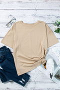 Sale Light Grey USA Lettering Patch Notched Neck Loose Tee
