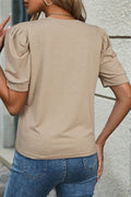 Parchment Solid Color Ruched Puff Sleeve T Shirt