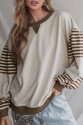 Parchment Striped Colorblock Patchwork Drop Shoulder Sweatshirt
