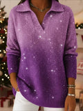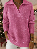 Christmas Printing Spring/Fall Casual Long Sleeve Shawl Collar Sweater