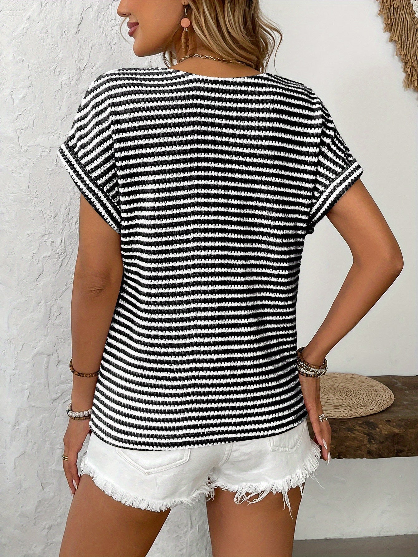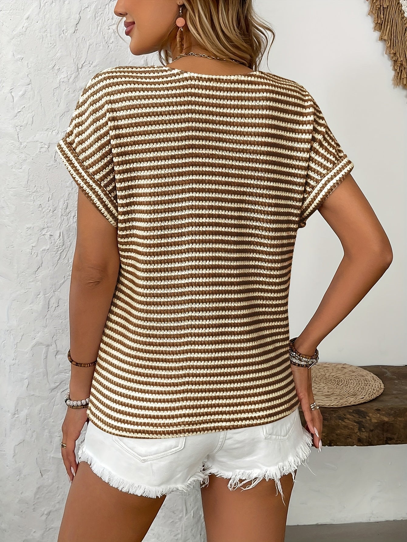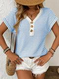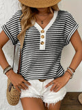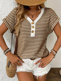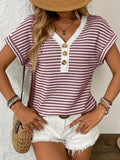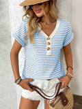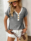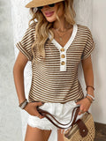 Patchwork V-Neck Button Pullover Short Sleeve T-Shirt