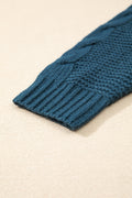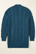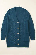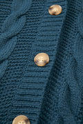 Peacock Blue Cable Knit Button Front Pocketed Baggy Cardigan