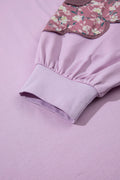 Sale Purple Leopard Striped Patchwork Plus Size Loose Sweatshirt