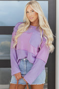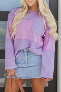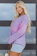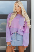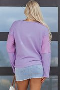 Phalaenopsis Thermal Knit Contrast Textured Patchwork Long Sleeve Top
