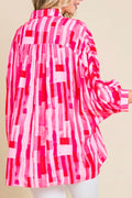 Sale Pink Abstract Print Batwing Sleeve Casual Shirt