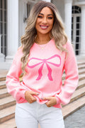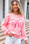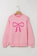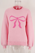 Pink Bow Graphic Drop Shoulder Round Neck Sweater