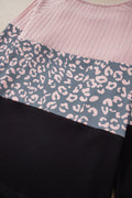 Pink Cheetah Textured Patchwork Buttoned Round Neck T Shirt