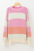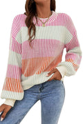 Pink Colorblock Textured Knit Bubble Sleeve Sweater