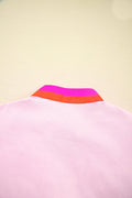 Sale Women's Color Block Quarter Zip T-Shirt - Casual Long Sleeve Top